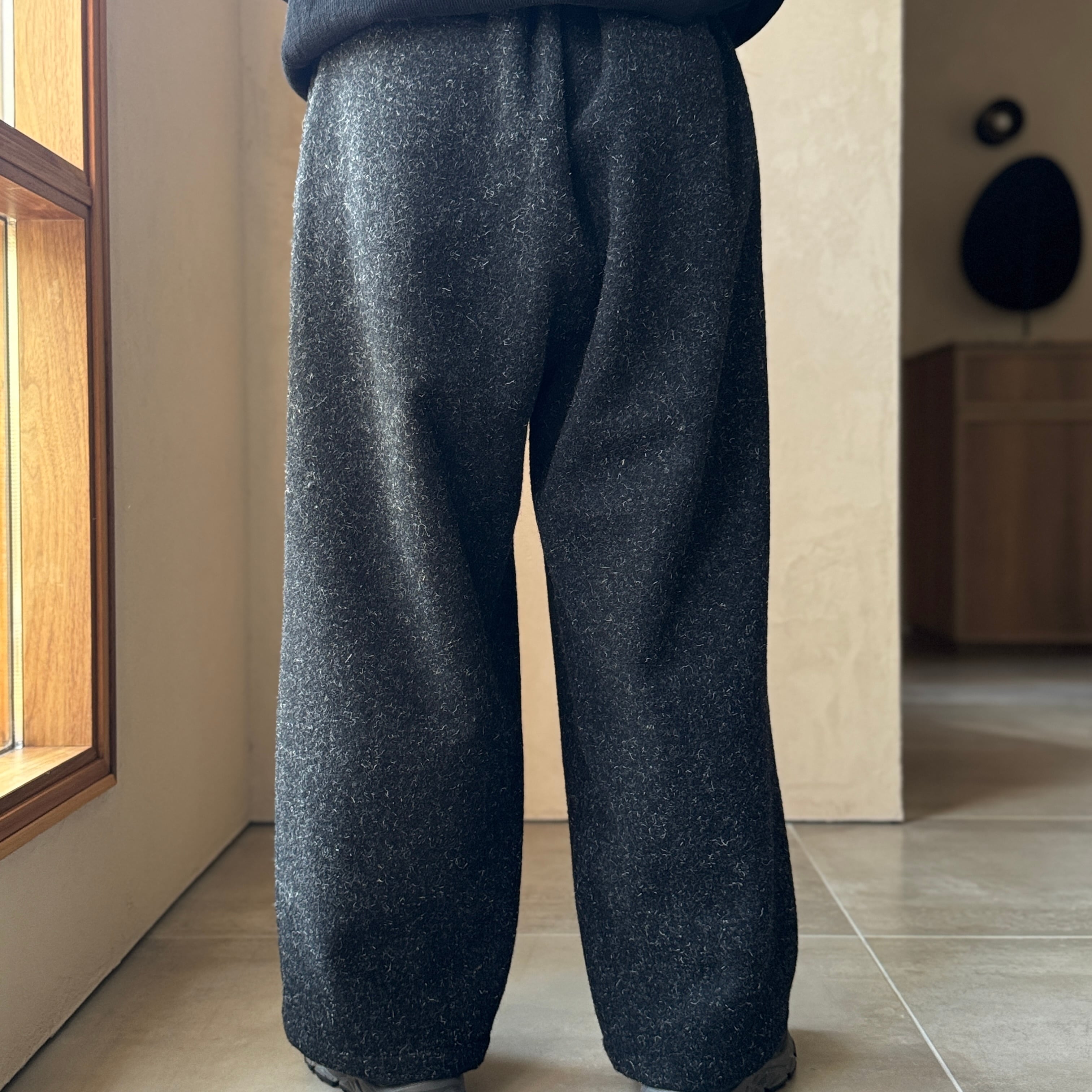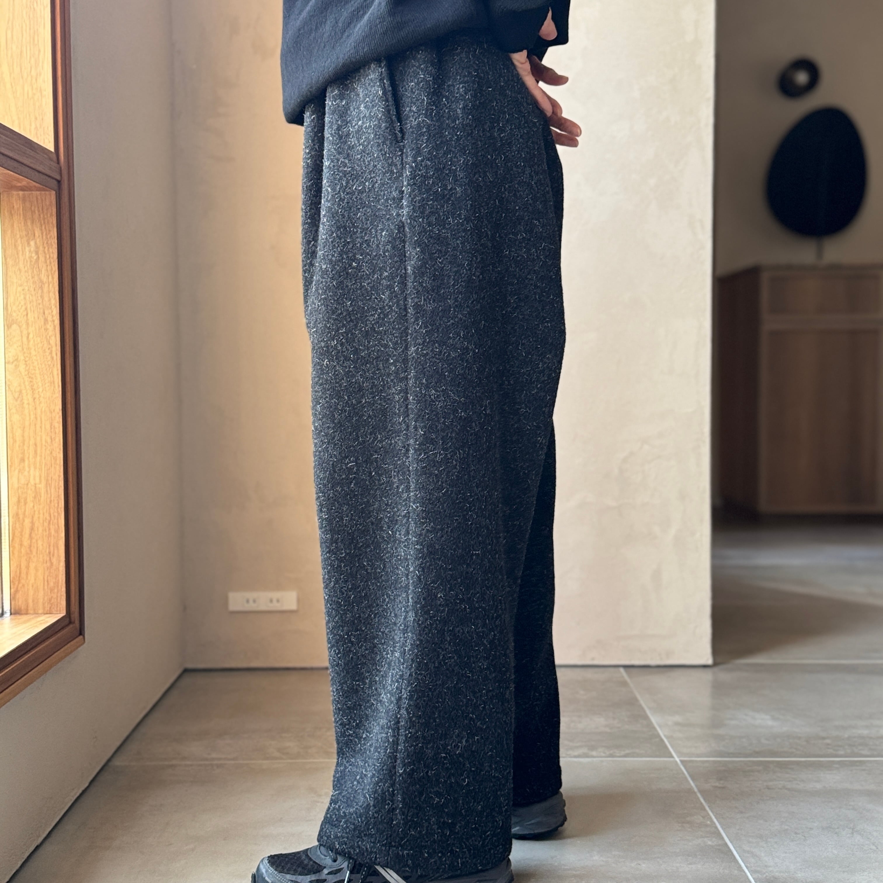 贅沢な生地の分量感が特徴で、ウエスト紐を絞る事でドレープ感が際立ち、より上品でインパクトのあるシルエットを作ります。軽量かつ肌離れも良く、リラックスして穿ける仕上がりです。