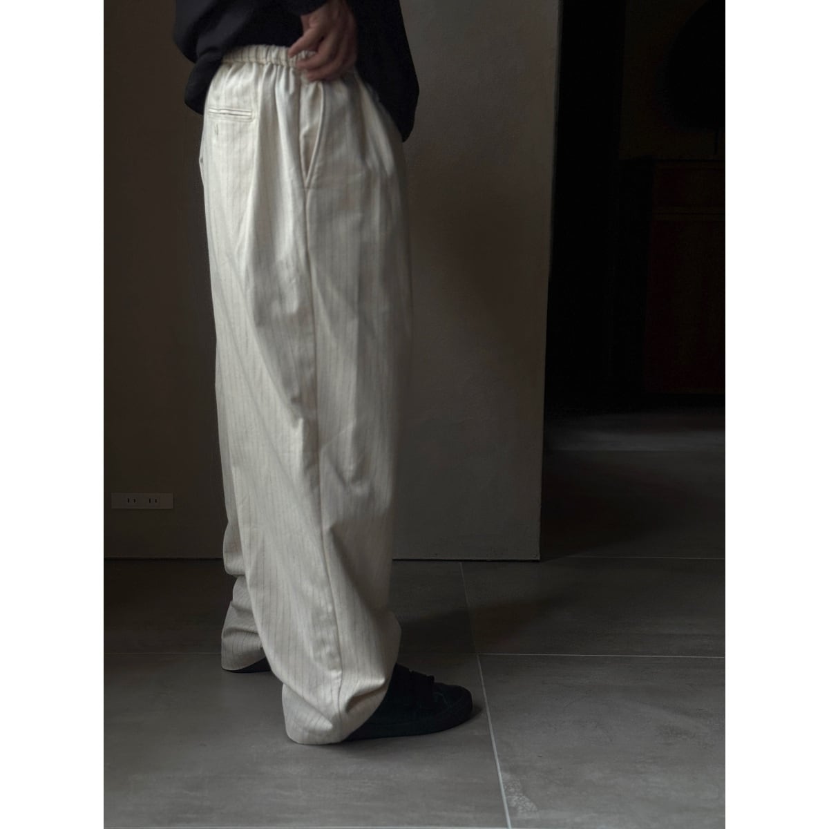 ウエストに大胆なシャーリングを持たせたリラックスフィットのイージーパンツです。