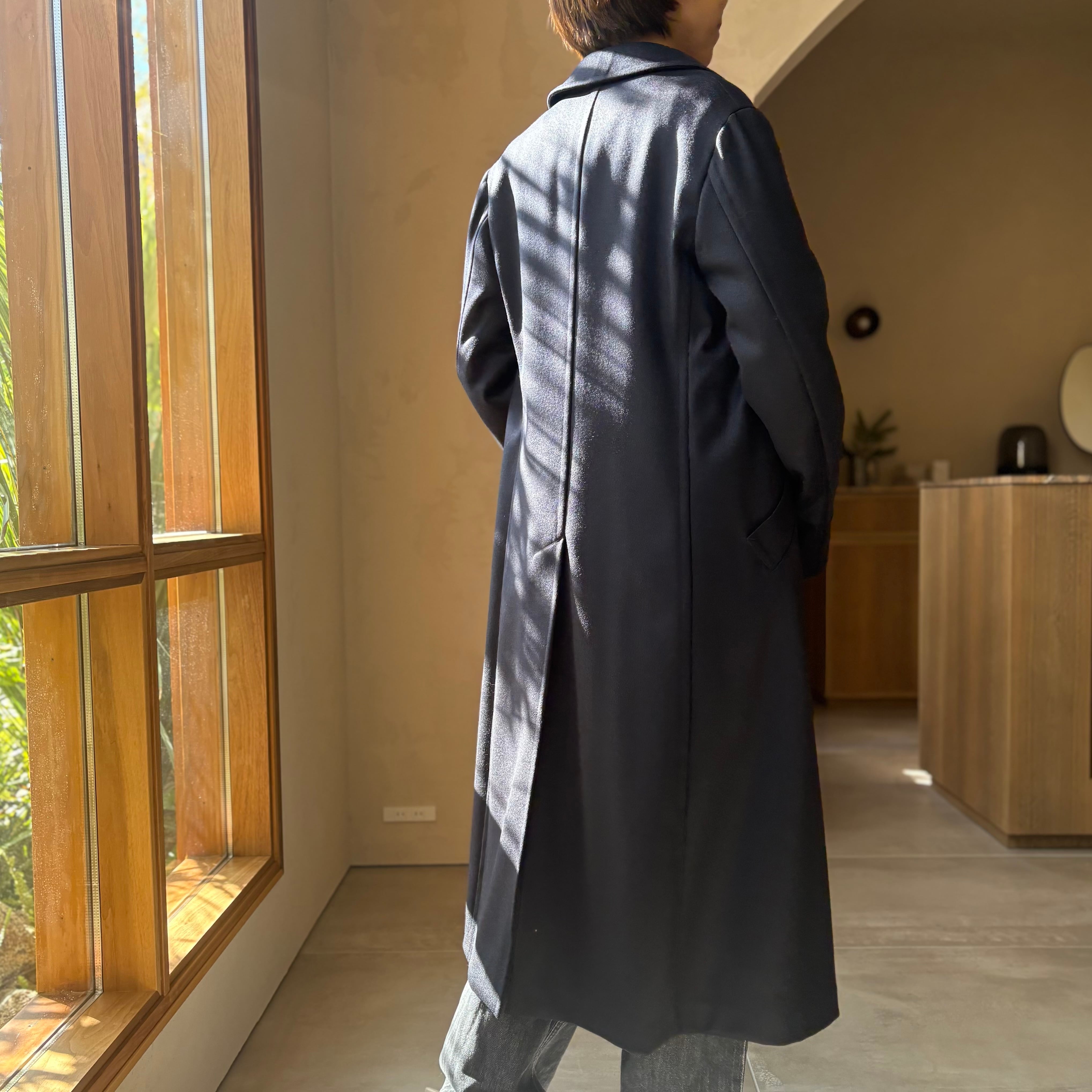 立体的に設計された肩周りと美しく落ちるロングラインが、着るだけで凛としたシルエットを演出。サイ独自のテーラリング技術を駆使したシルエットが、美しいラインを描きます。