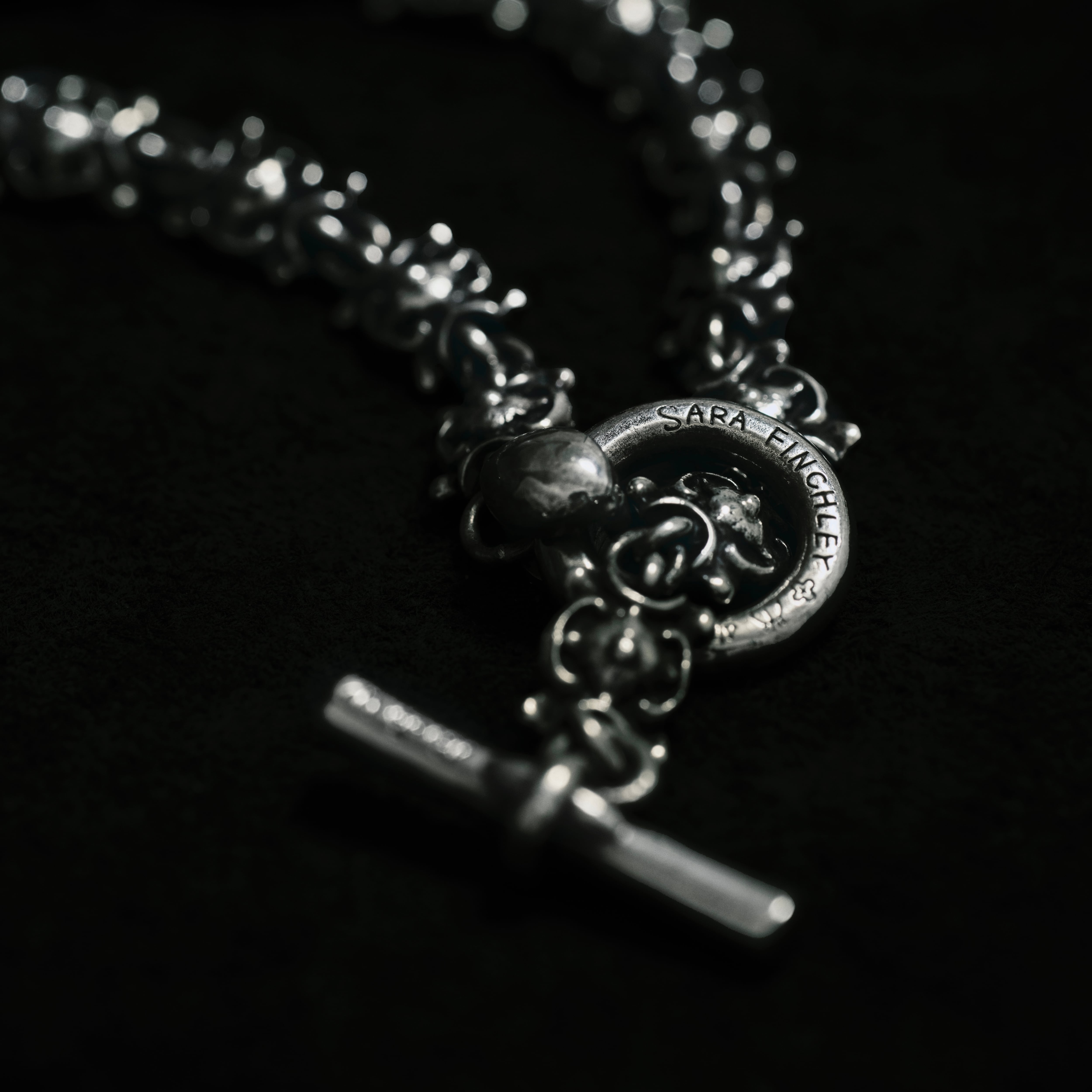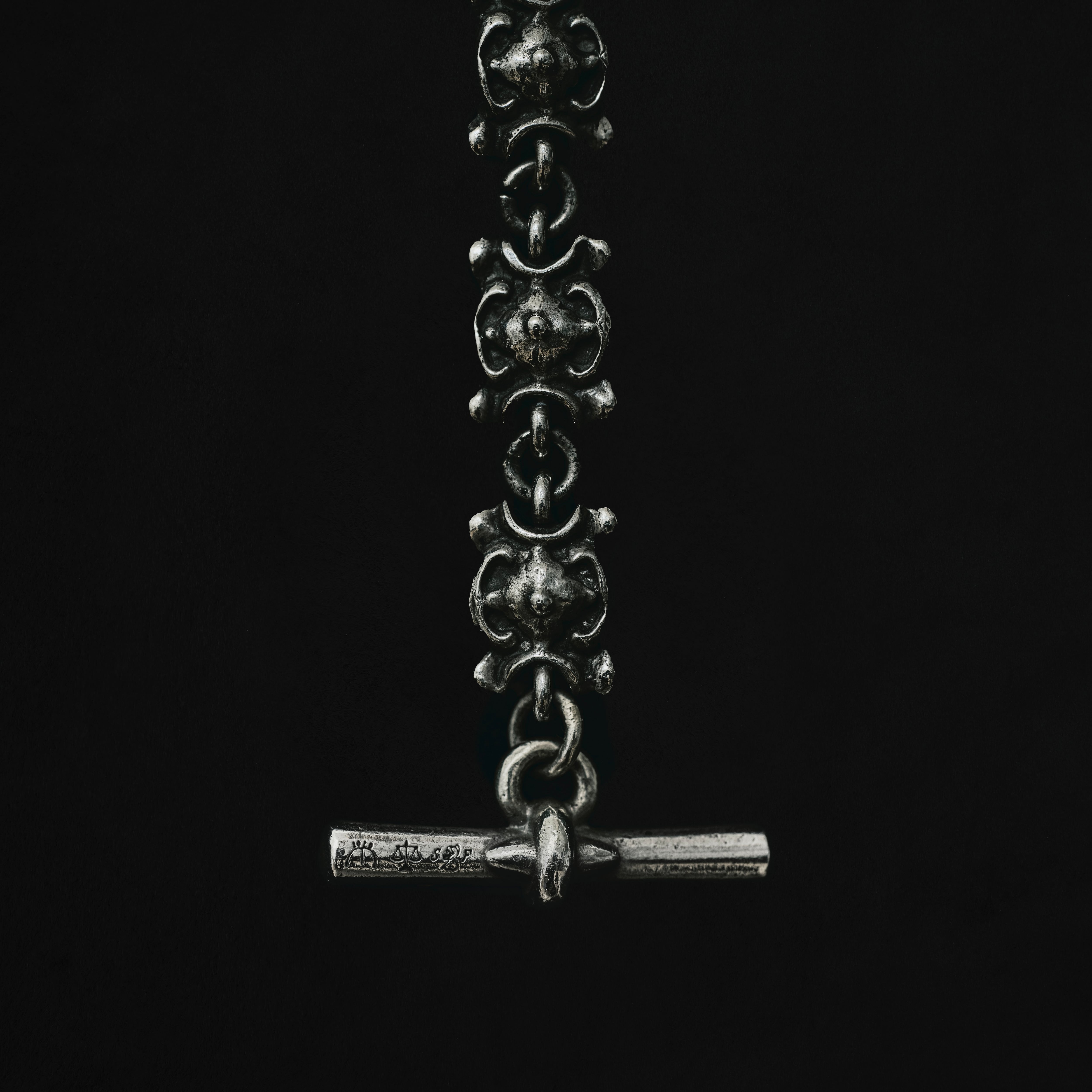鋳造された細やかなパーツを全て手作業で連結した緻密なチェーンジュエリーです。