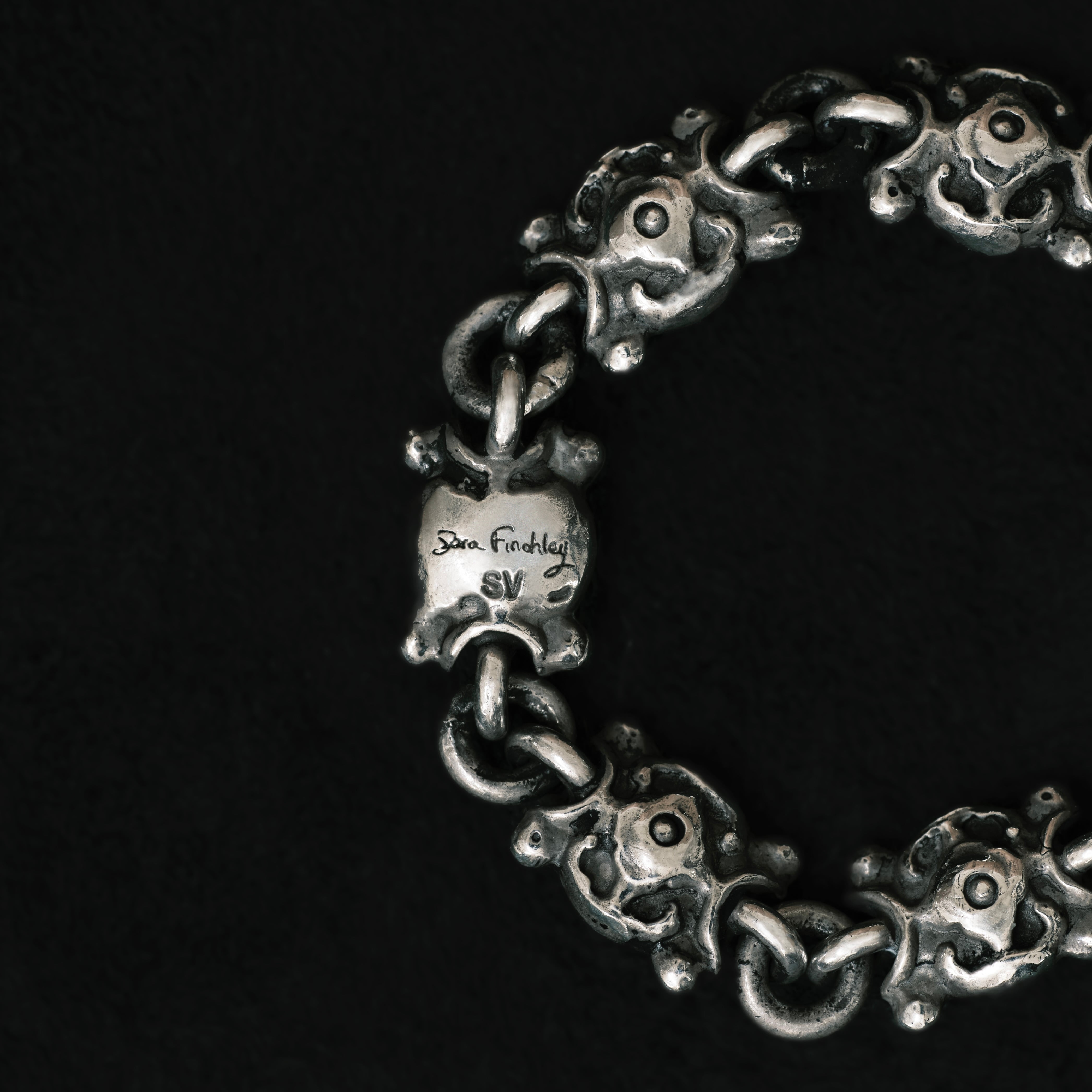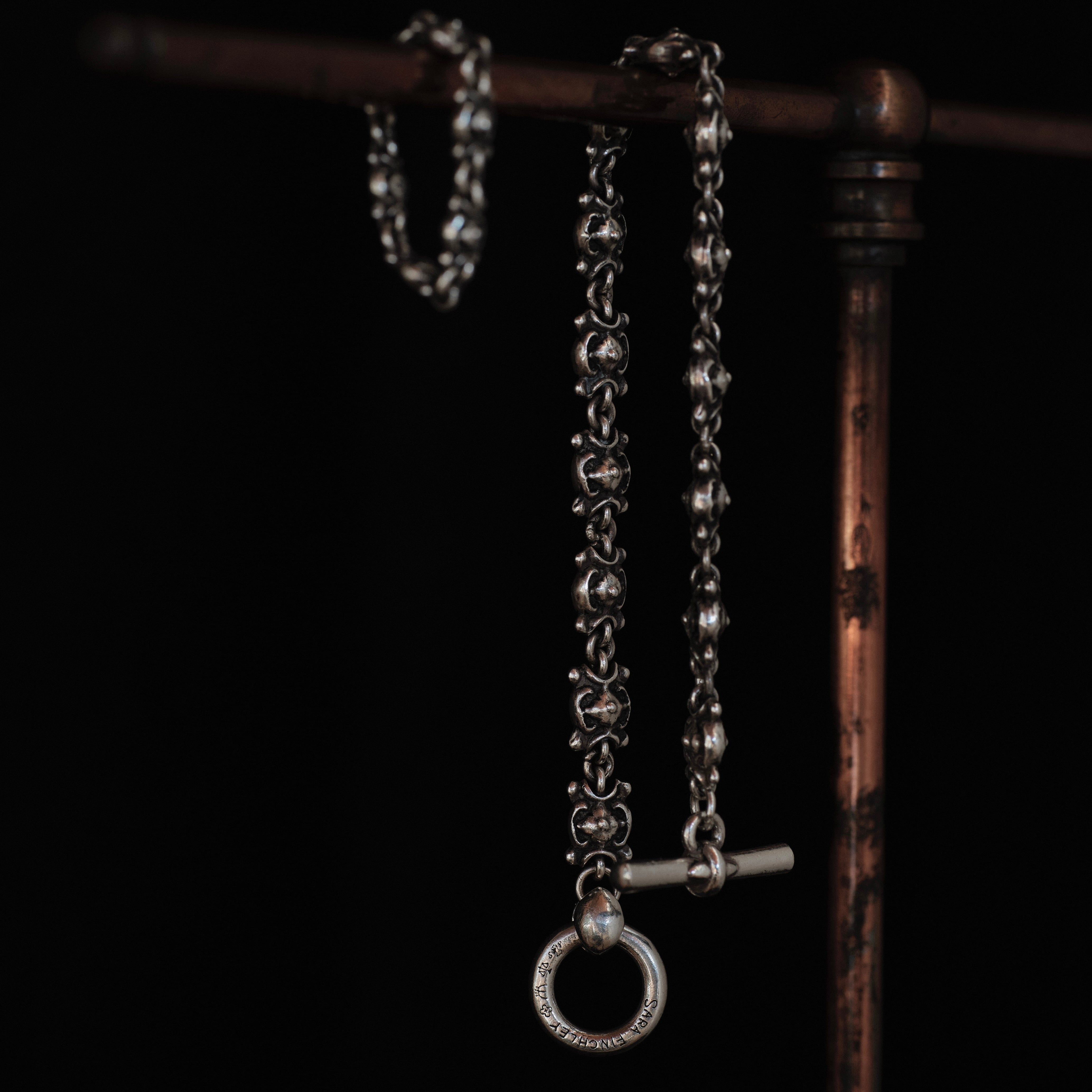 鋳造された細やかなパーツを全て手作業で連結した緻密なチェーンジュエリーです。