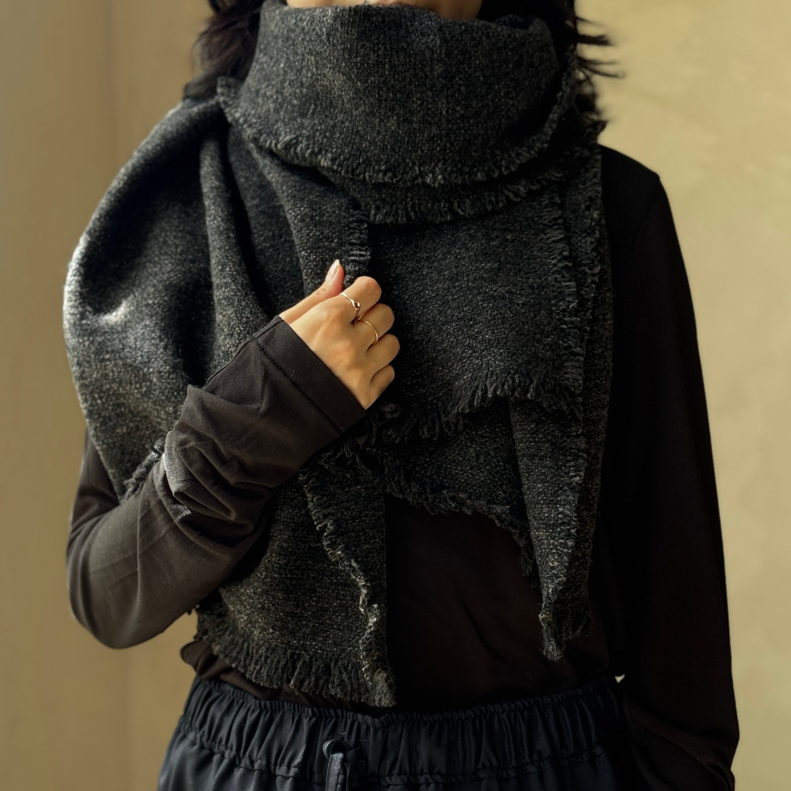 空気を纏ったかの様なふわっとした質感と、保温性が魅力的です。大判なサイズ感ですので、様々な巻き方とスタイリングが可能です。