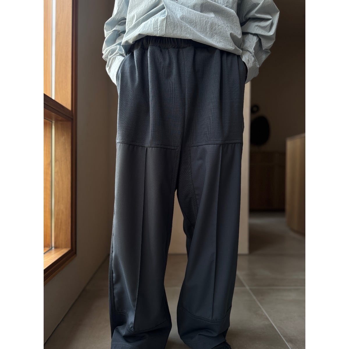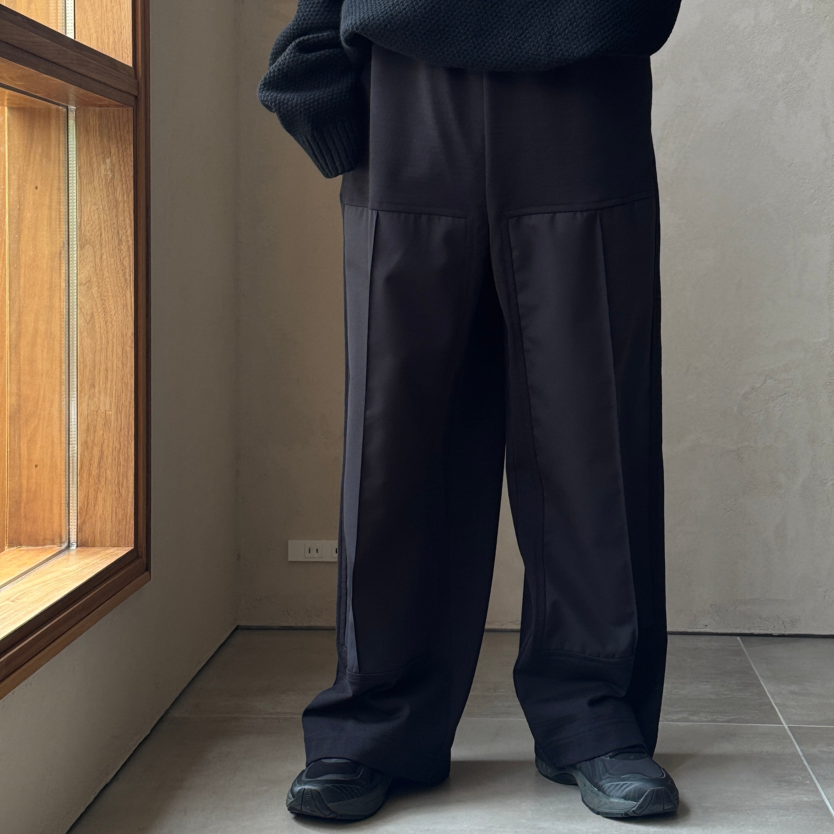 カジュアルなジャージパンツに、フォーマルなスラックスパンの要素をドッキングしました。