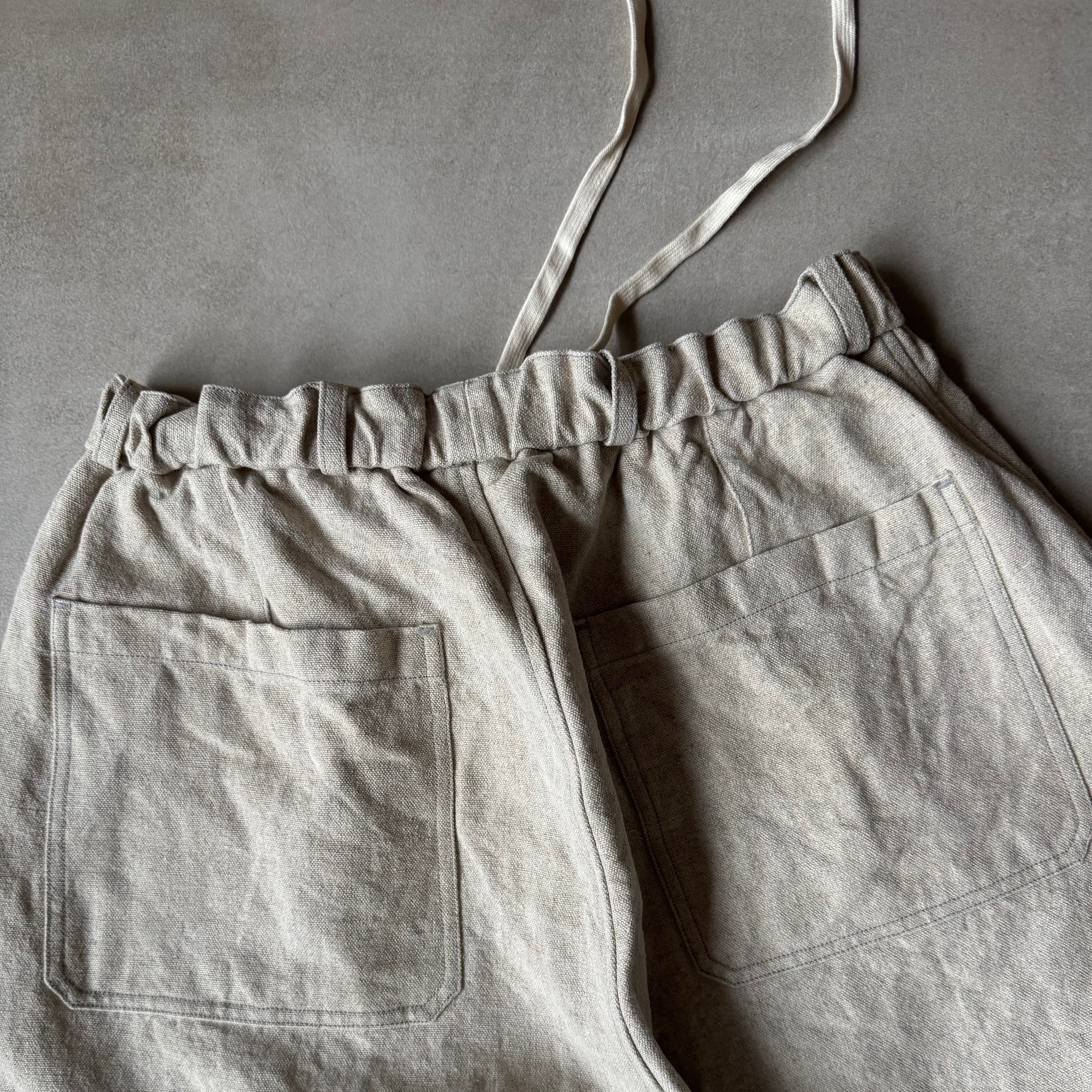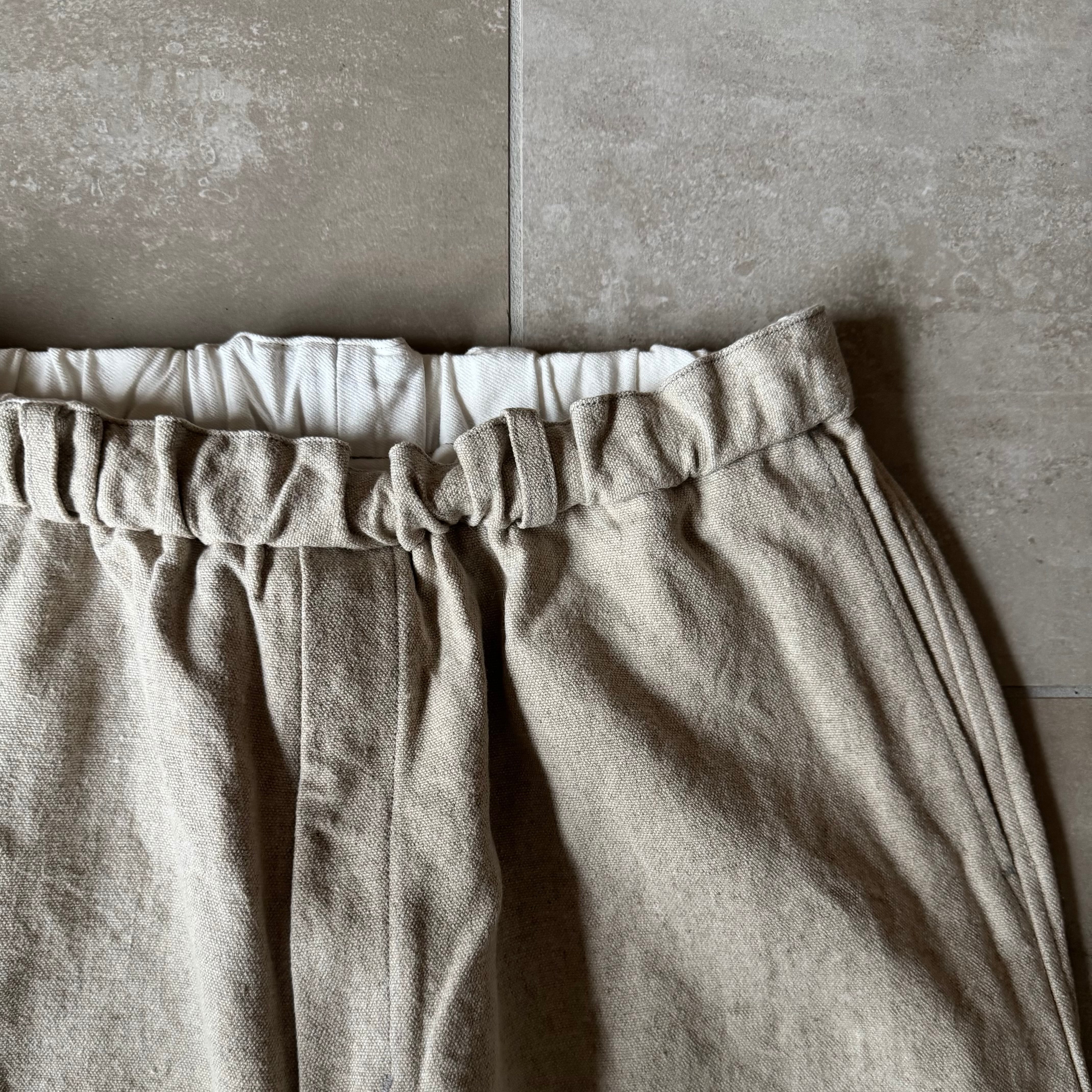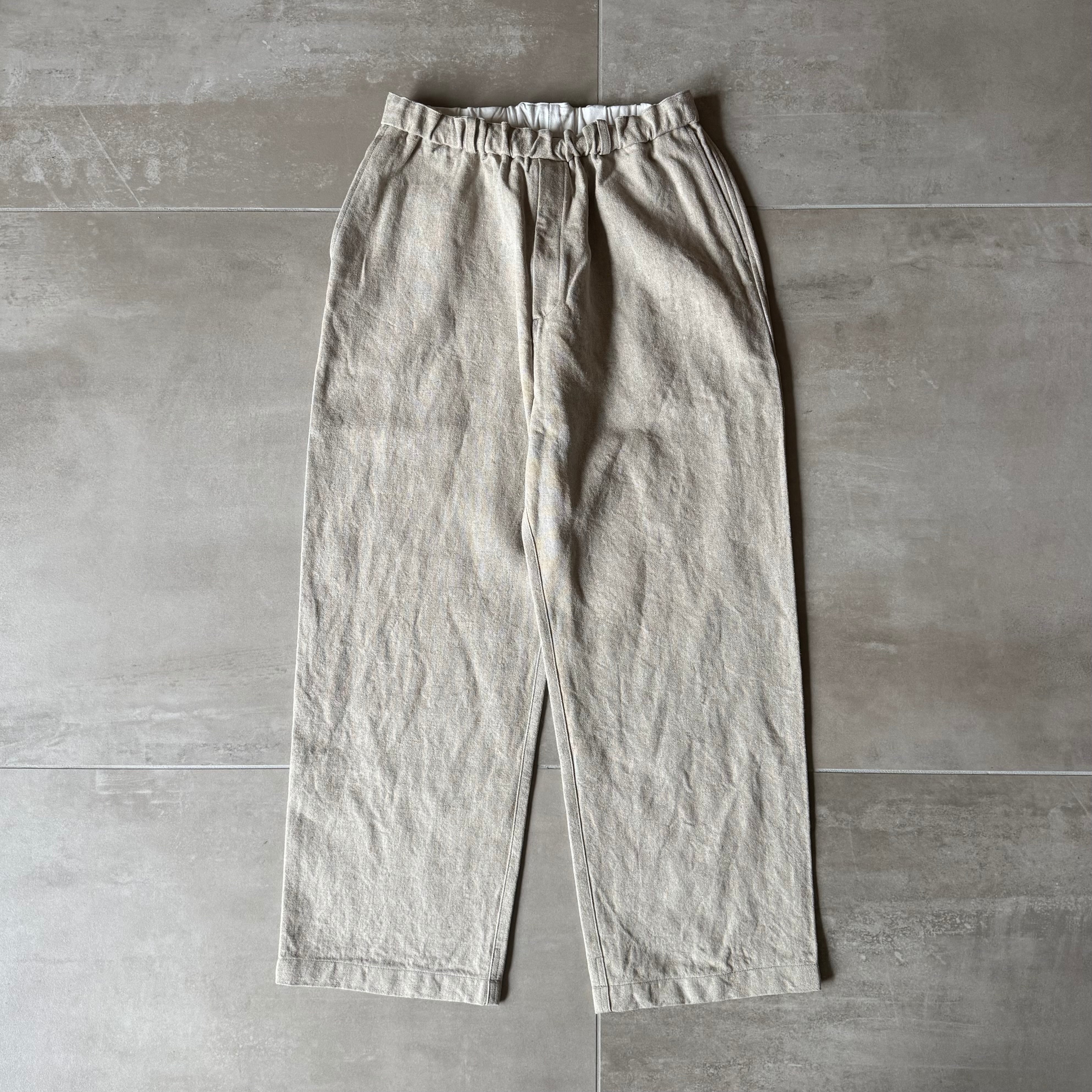亜麻(リネン)と苧麻(ラミー)二種類の麻をブレンドした、肉厚で存在感のあるワイドパンツ。