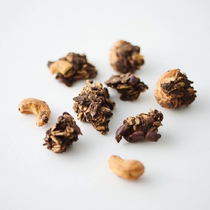 ファンファイバーのカカオグラノーラは、ココアパウダーとカカオニブをたっぷりと組み合わせて。そうすることで、厚みのある、複雑な香りになりました。