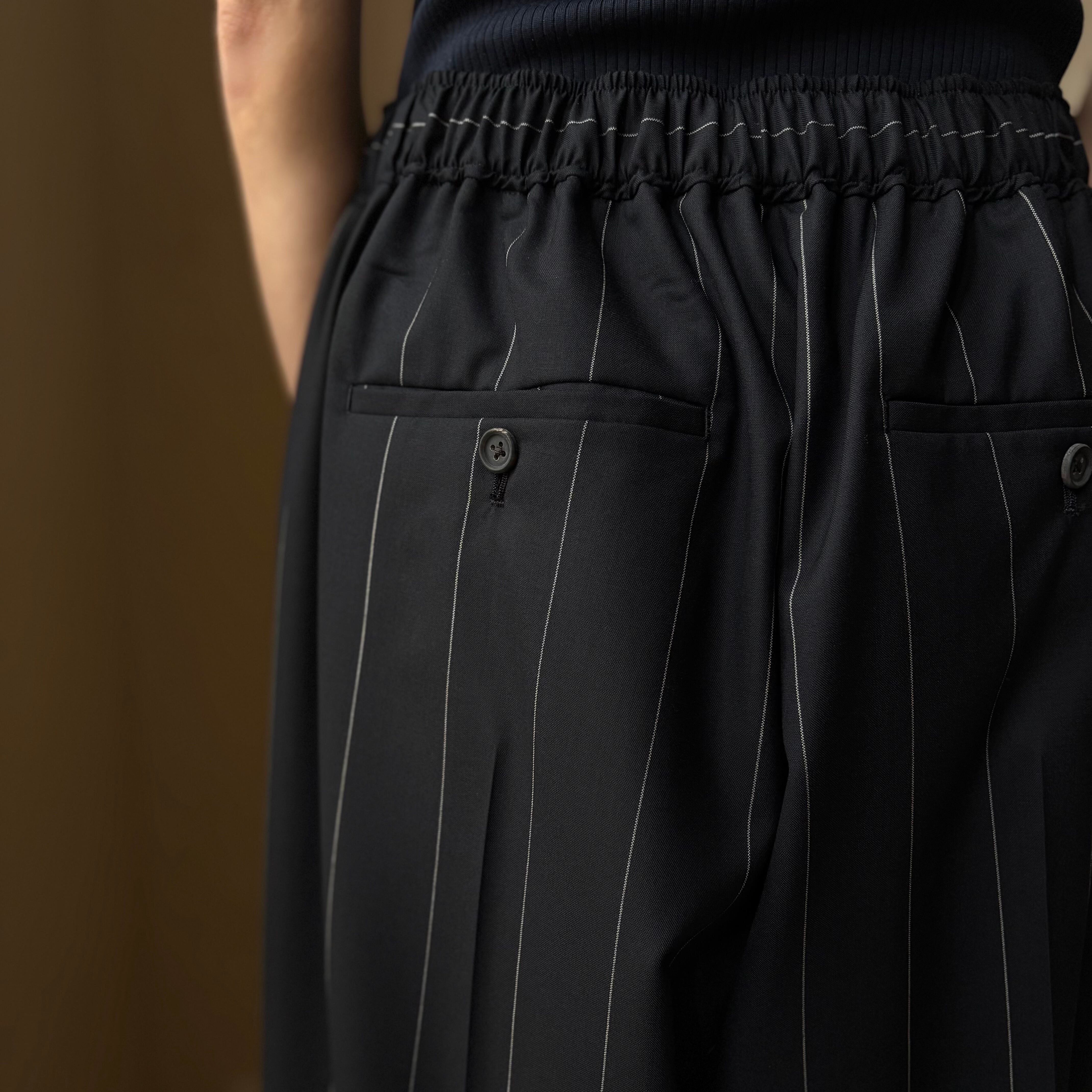 前は脇ポケット、後ろは片玉ポケットボタン付き。サマーウールの涼しいパンツです。