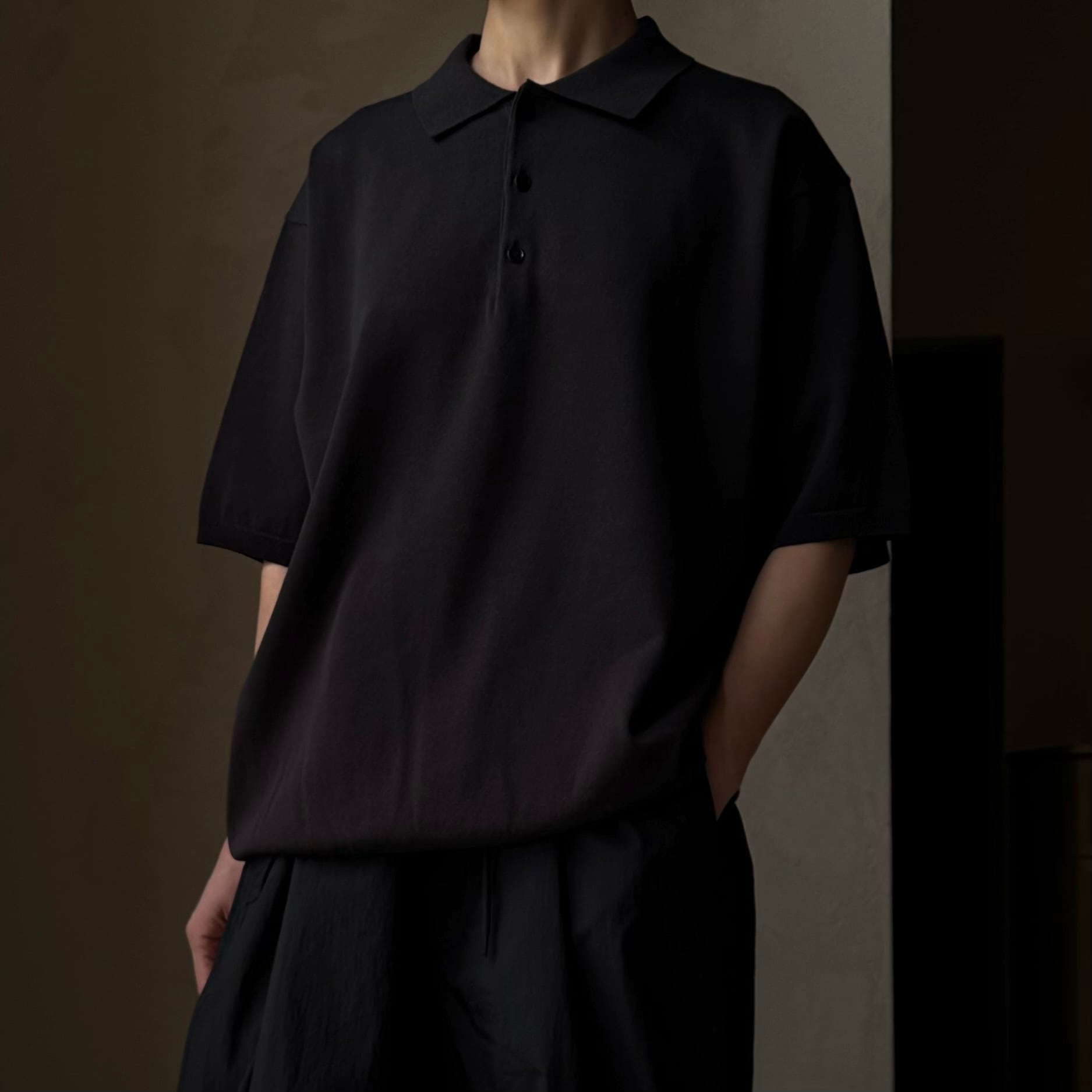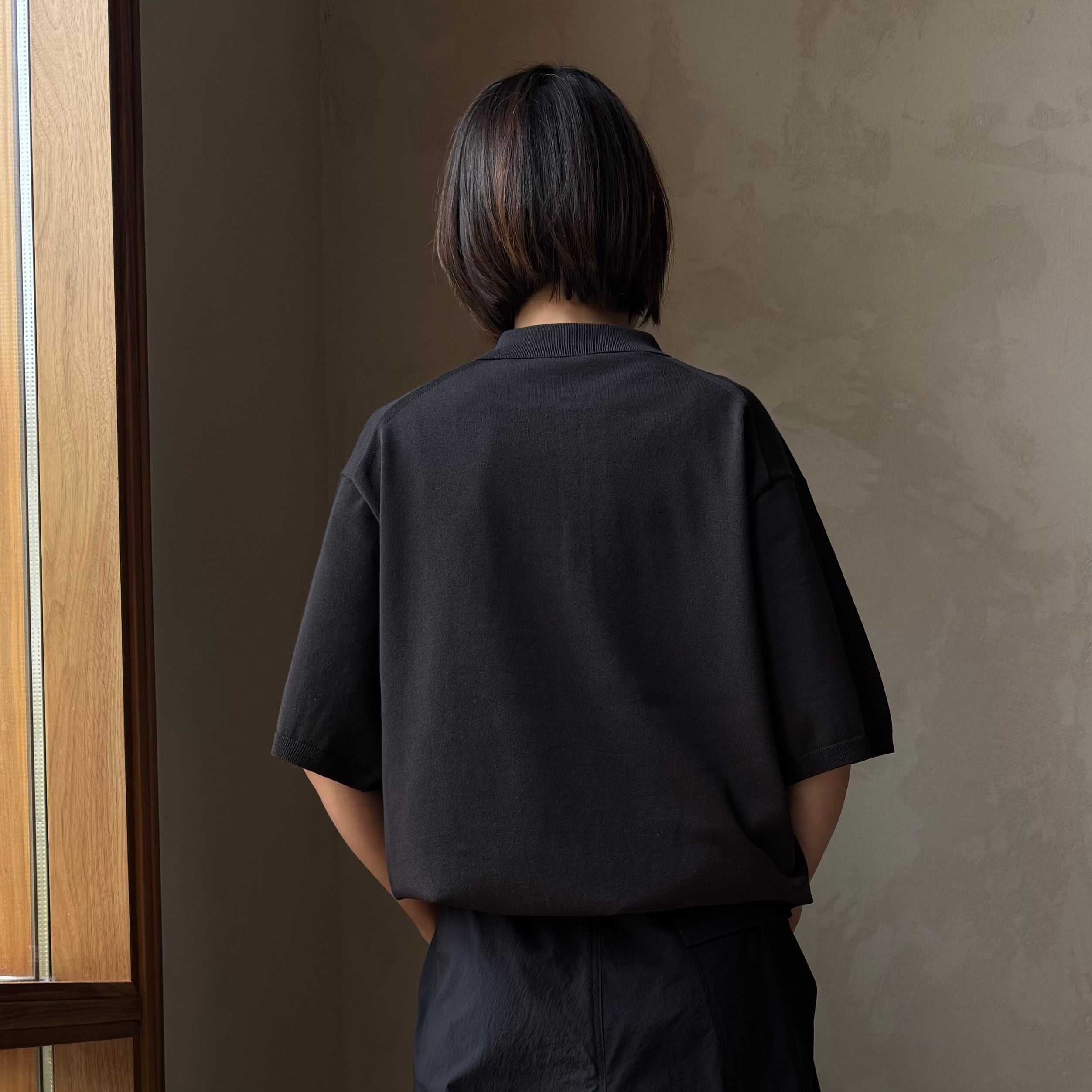 ATON | COTTON WASHI KNIT HALF SLEEVE POLO SWEATER